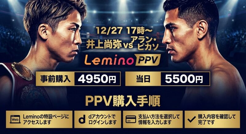 今回の井上尚弥選手とアラン・ピカソ選手による注目のタイトルマッチは、NTTドコモが提供する映像配信サービス「Lemino(レミノ)」で、ペイ・パー・ビュー(PPV)形式による日本国内独占ライブ配信が決定しています。