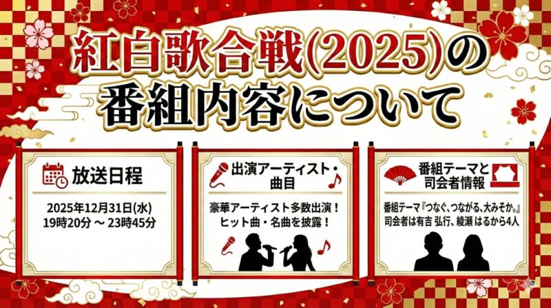 第76回NHK紅白歌合戦を最大限に楽しむために、放送スケジュールや番組の概要を押さえておきましょう。