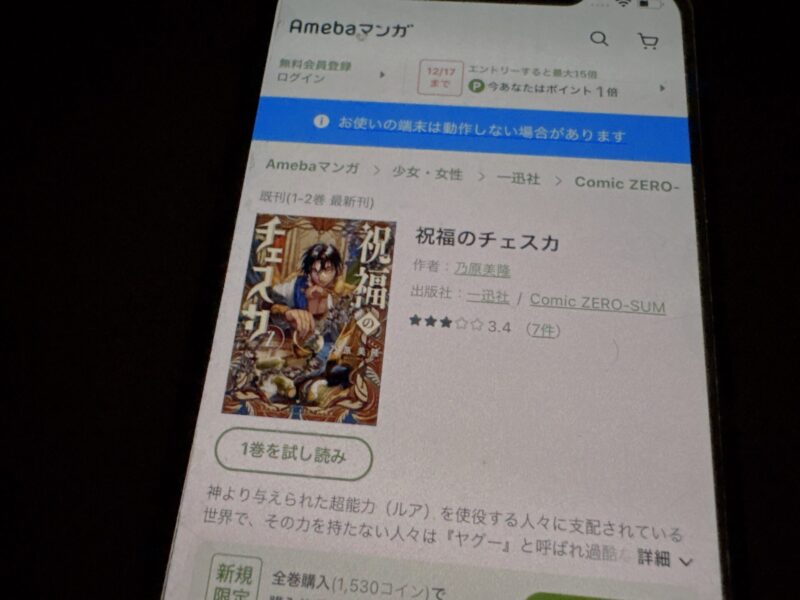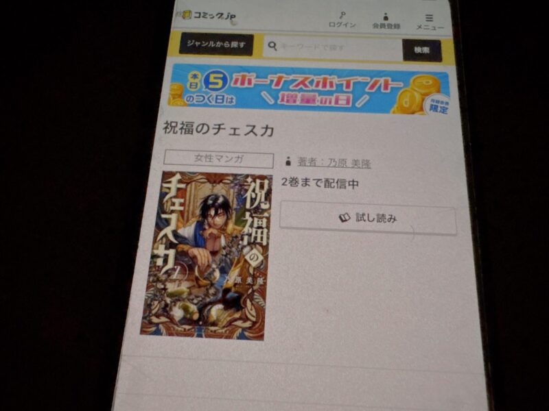 祝福のチェスカはまるごと無料では読めませんが、試し読みはできます。連載版の1・2話は期間限定で無料公開されている場合があります。