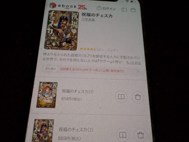 クーポンは6回利用できるので、祝福のチェスカ全2巻をそれぞれ70%OFFで購入可能です。