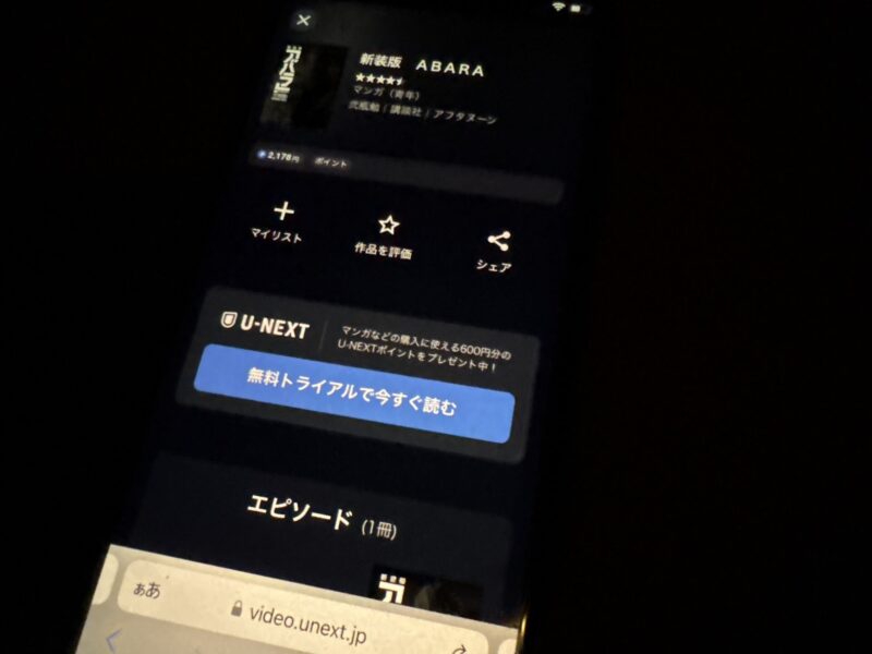 ただし、U-NEXTは無料トライアル期間が過ぎると月額2,189円(税込)かかるため、ABARAを読みたい方は解約するのを忘れないようにしましょう。