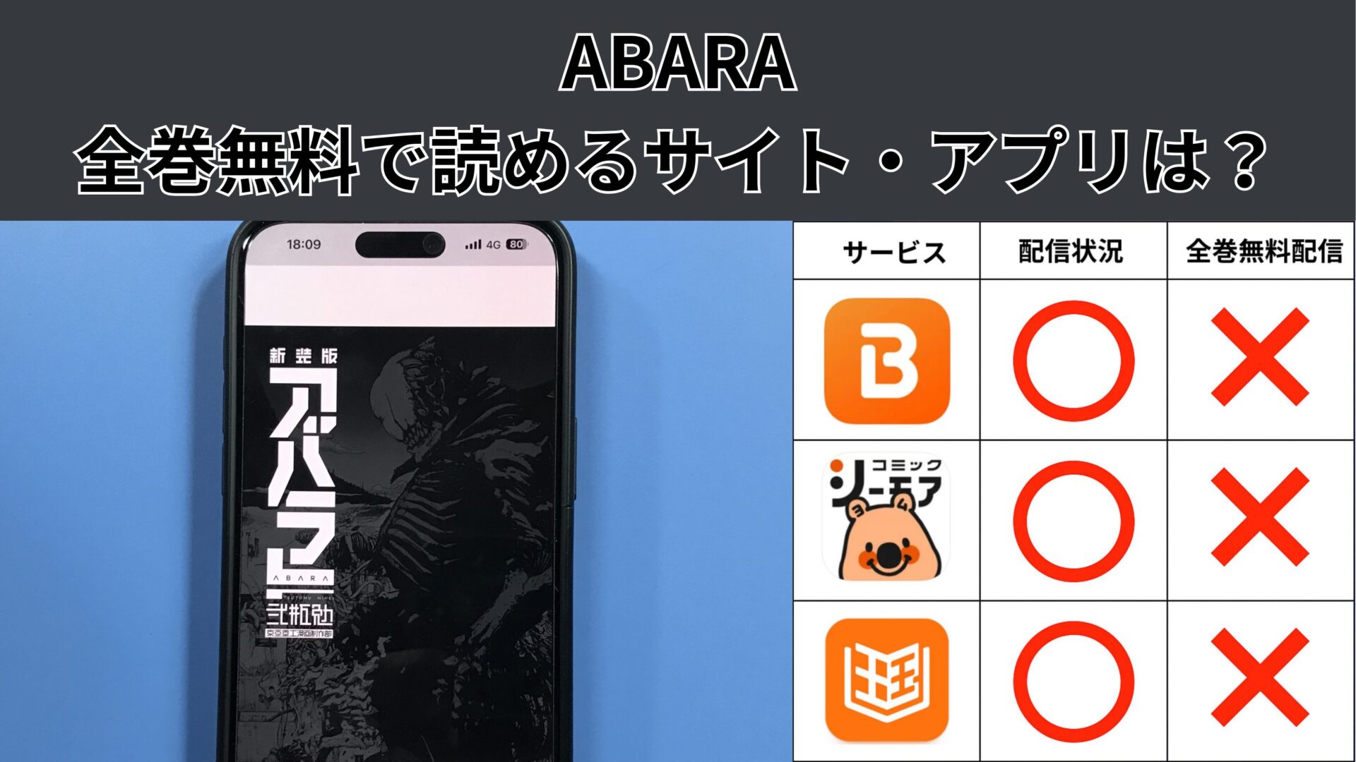 ここからは、ABARAの漫画が無料で読めるアプリを紹介します。
