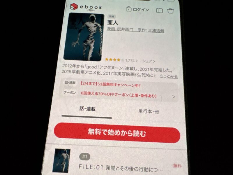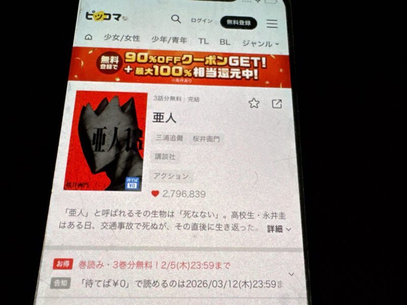 この記事では、最新の亜人無料キャンペーンや電子書籍の割引情報などの最新情報を発信しています。