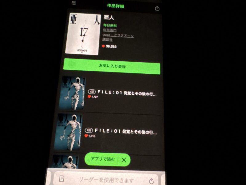 ここからは、亜人の漫画が無料で読めるアプリを紹介します。