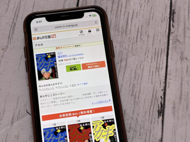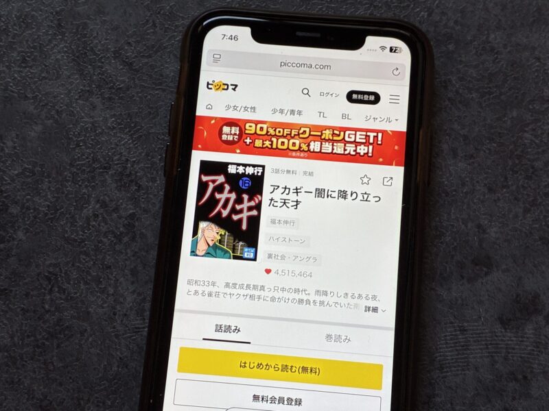 ここからは、アカギの漫画が無料で読めるアプリを紹介します。