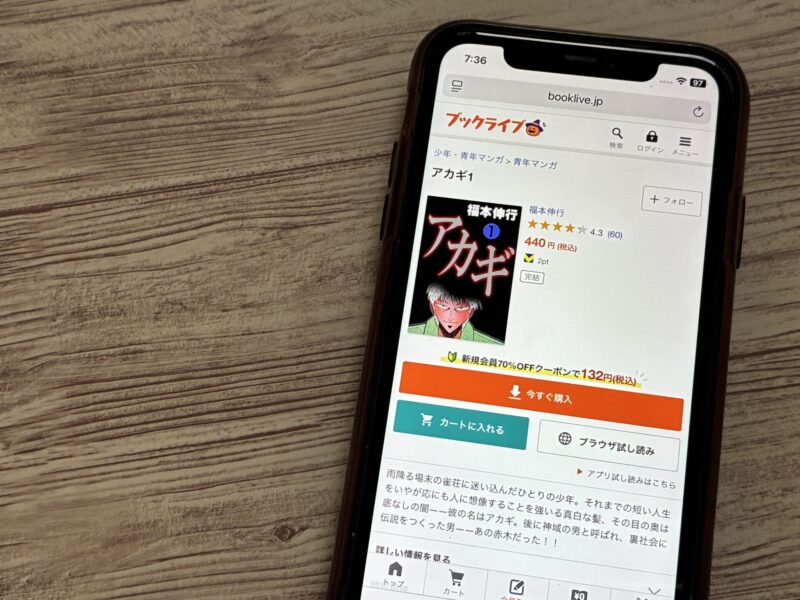 初回クーポンと組み合わせることでアカギ全巻をよりお得に購入することもできるので、気になる人は公式サイトをチェックしてみましょう。