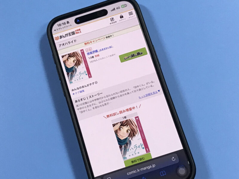 アオハライドはまるごと無料では読めませんが、試し読みはできます。