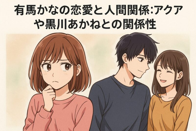 有馬かなのキャラクターを語る上で欠かせないのが、星野アクアを中心とした複雑な恋愛模様と人間関係です。彼女の行動や成長は、アクアへの想いやライバルである黒川あかねとの関係性に大きく影響を受けていました。