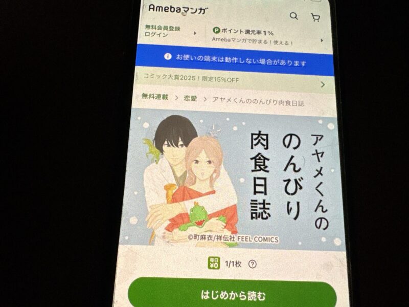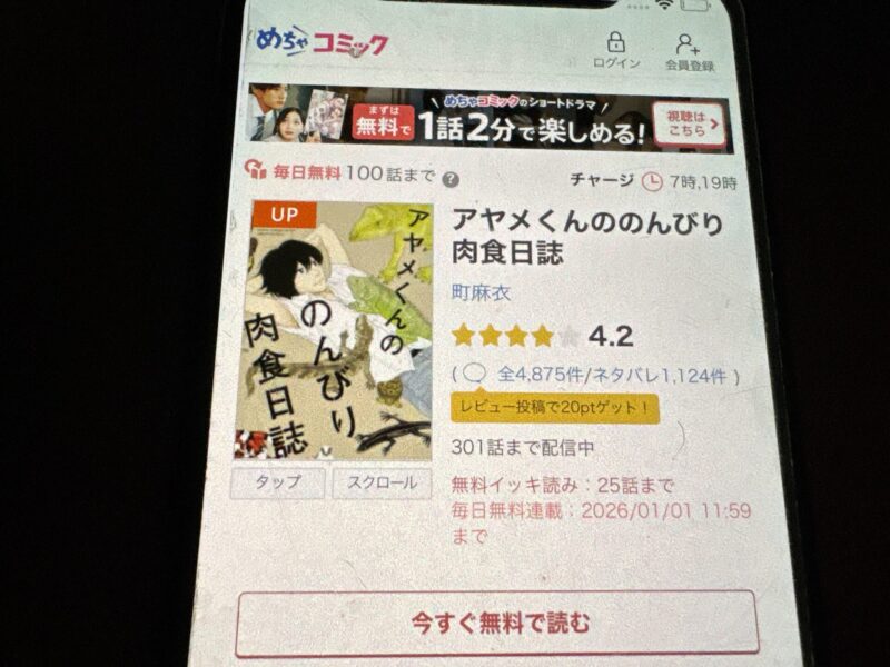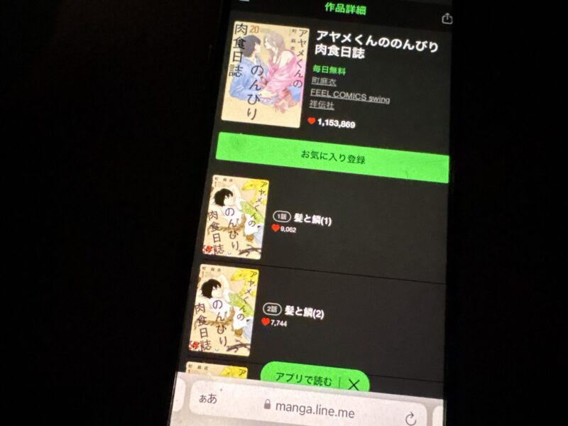 ここからは、アヤメくんののんびり肉食日誌の漫画が無料で読めるアプリを紹介します。