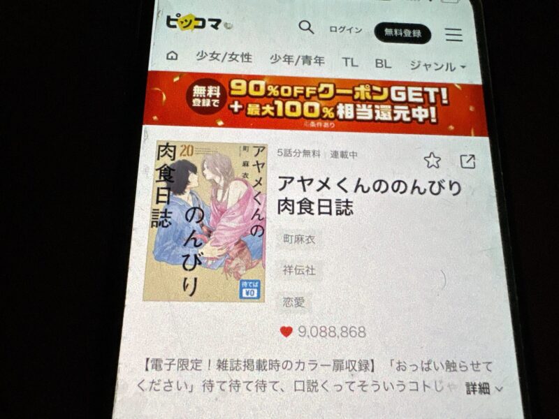 ピッコマでは、無料会員登録で90%OFFクーポン(割引上限1,000コイン)がもらえます。