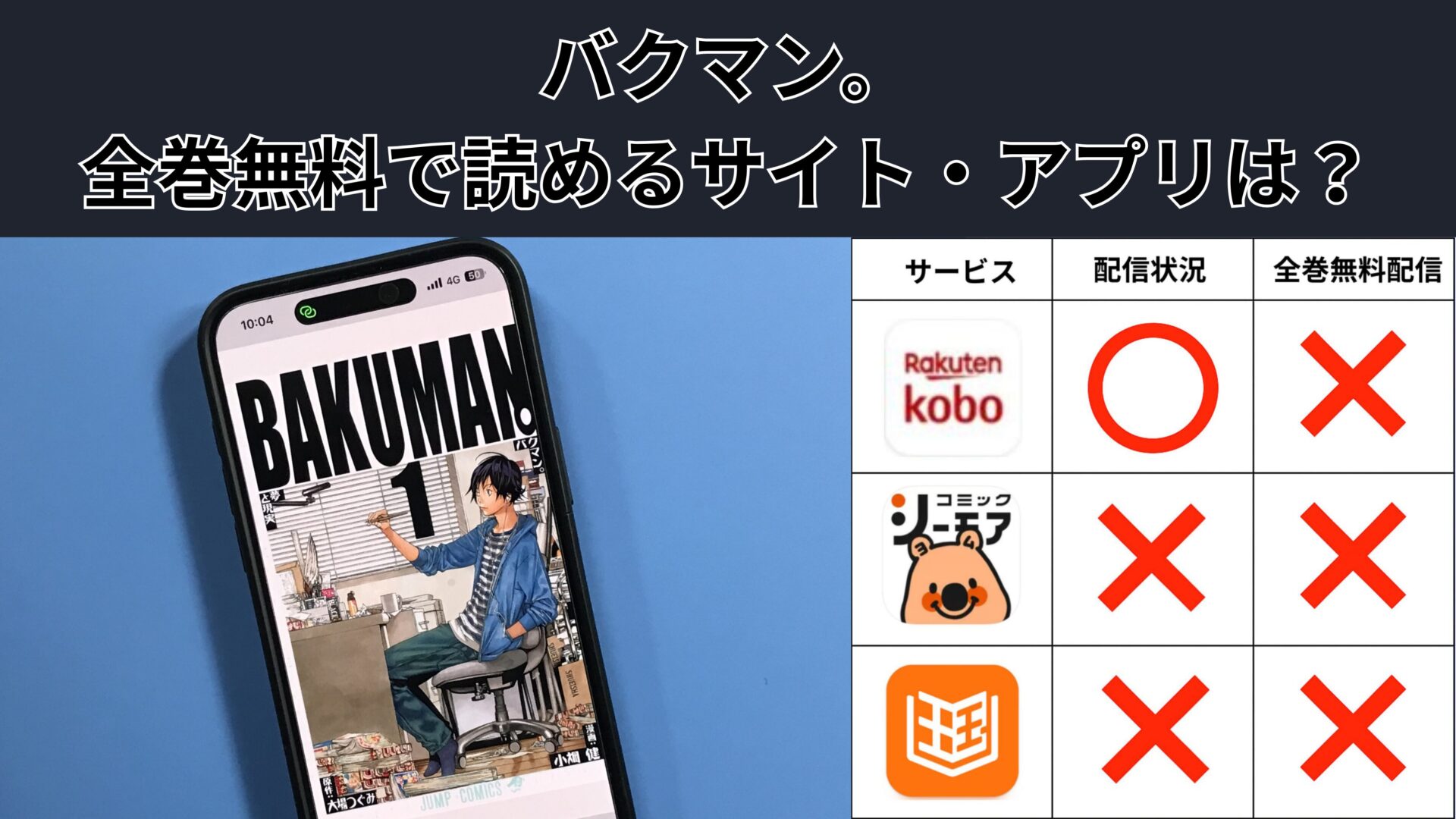 この記事では、最新のバクマン。無料キャンペーンや電子書籍の割引情報などの最新情報を発信しています。