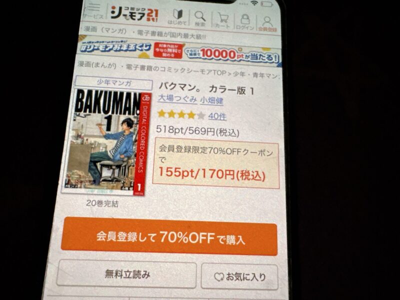 初回クーポンと組み合わせることでバクマン。全巻をよりお得に購入することもできるので、気になる人は公式サイトをチェックしてみましょう。