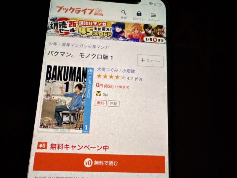 キャンペーンを利用すると、バクマン。を割安にまとめて購入したり、1巻だけ無料で購入することが可能です。