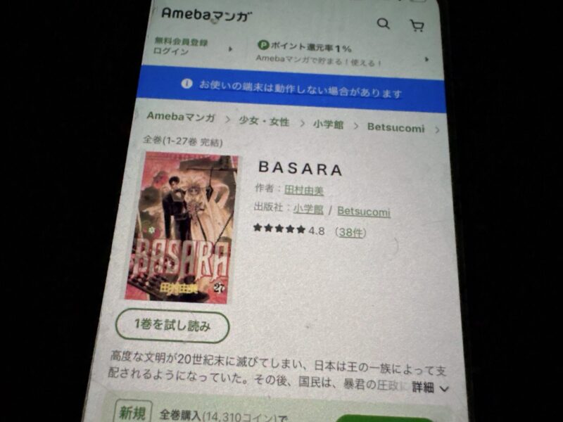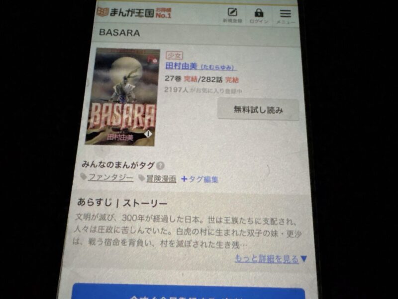 BASARAはまるごと無料では読めませんが、試し読みはできます。