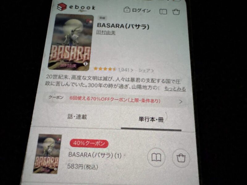 キャンペーンを利用すると、BASARAを割安にまとめて購入したり、1巻だけ無料で購入することが可能です。