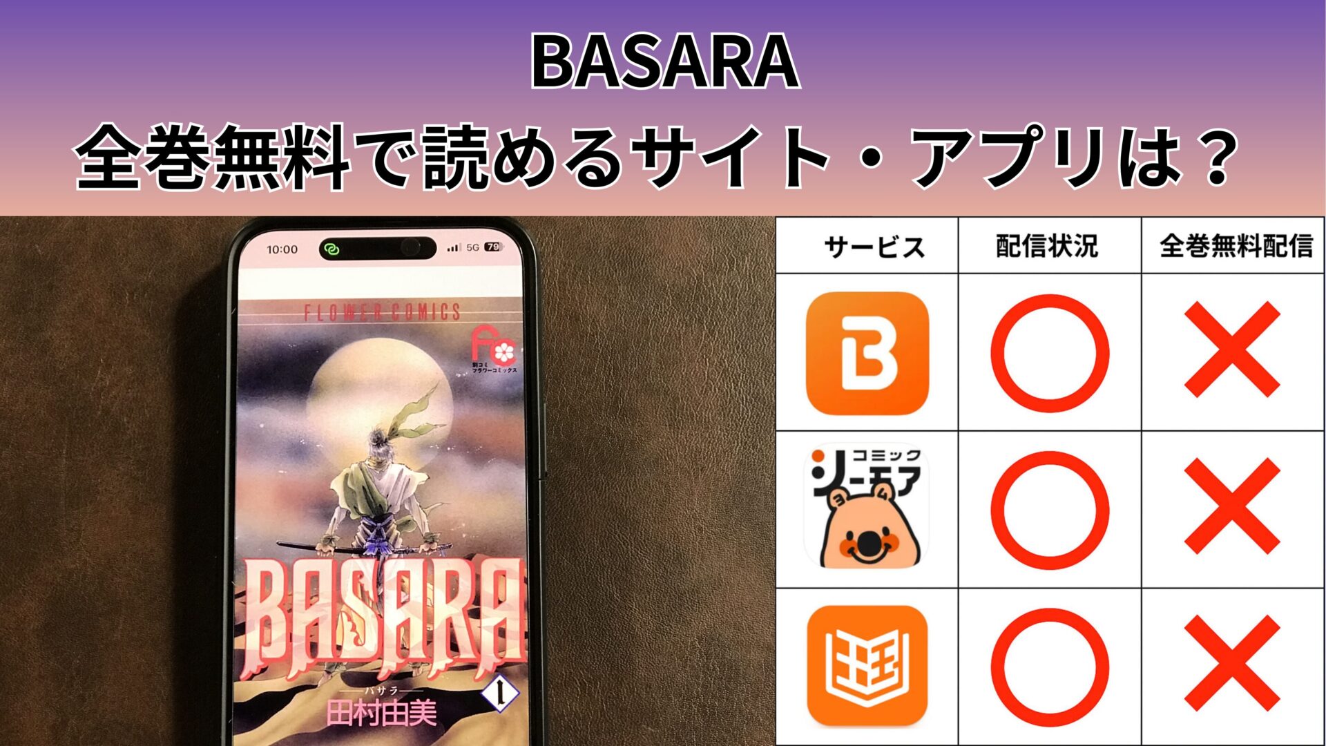 ここからは、BASARAの漫画が無料で読めるアプリを紹介します。