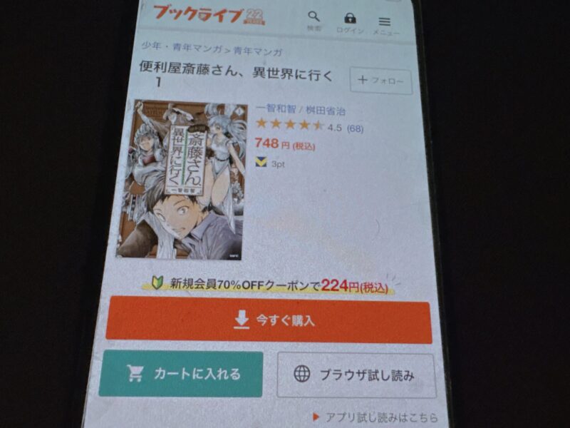 また、ブックライブは会員登録するだけで1冊限定の70%オフクーポンがもらえます。