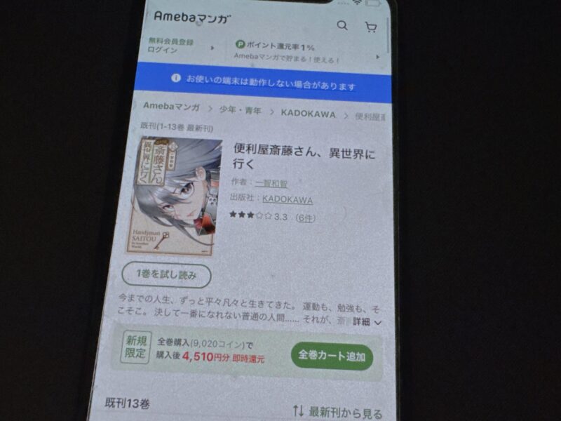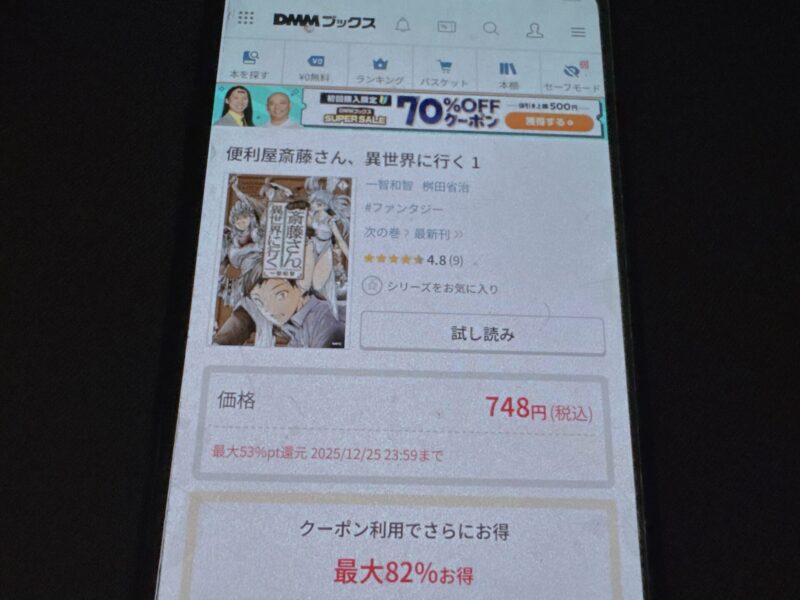 キャンペーンを利用すると、便利屋斎藤さん、異世界に行くを割安にまとめて購入したり、1巻だけ無料で購入することが可能です。