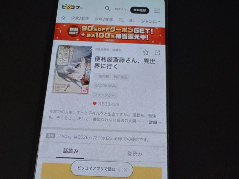 ここからは、便利屋斎藤さん、異世界に行くの漫画が無料で読めるアプリを紹介します。