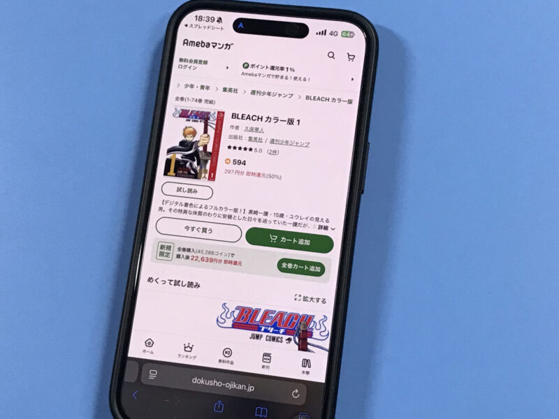 BLEACHはまるごと無料では読めませんが、試し読みはできます。