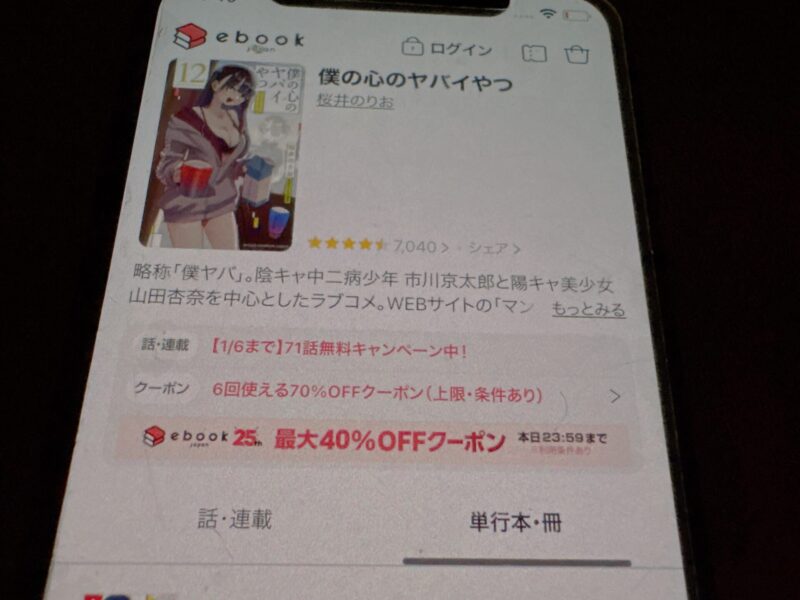 キャンペーンを利用すると、僕の心のヤバイやつを割安にまとめて購入したり、1巻だけ無料で購入することが可能です。
