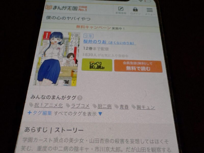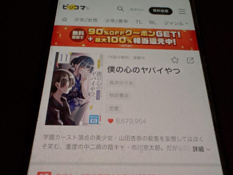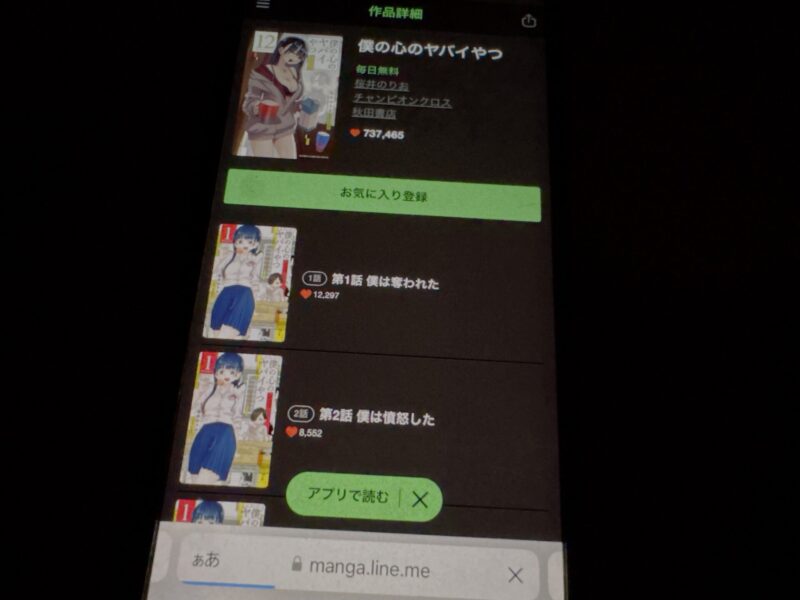 ここからは、僕の心のヤバイやつの漫画が無料で読めるアプリを紹介します。