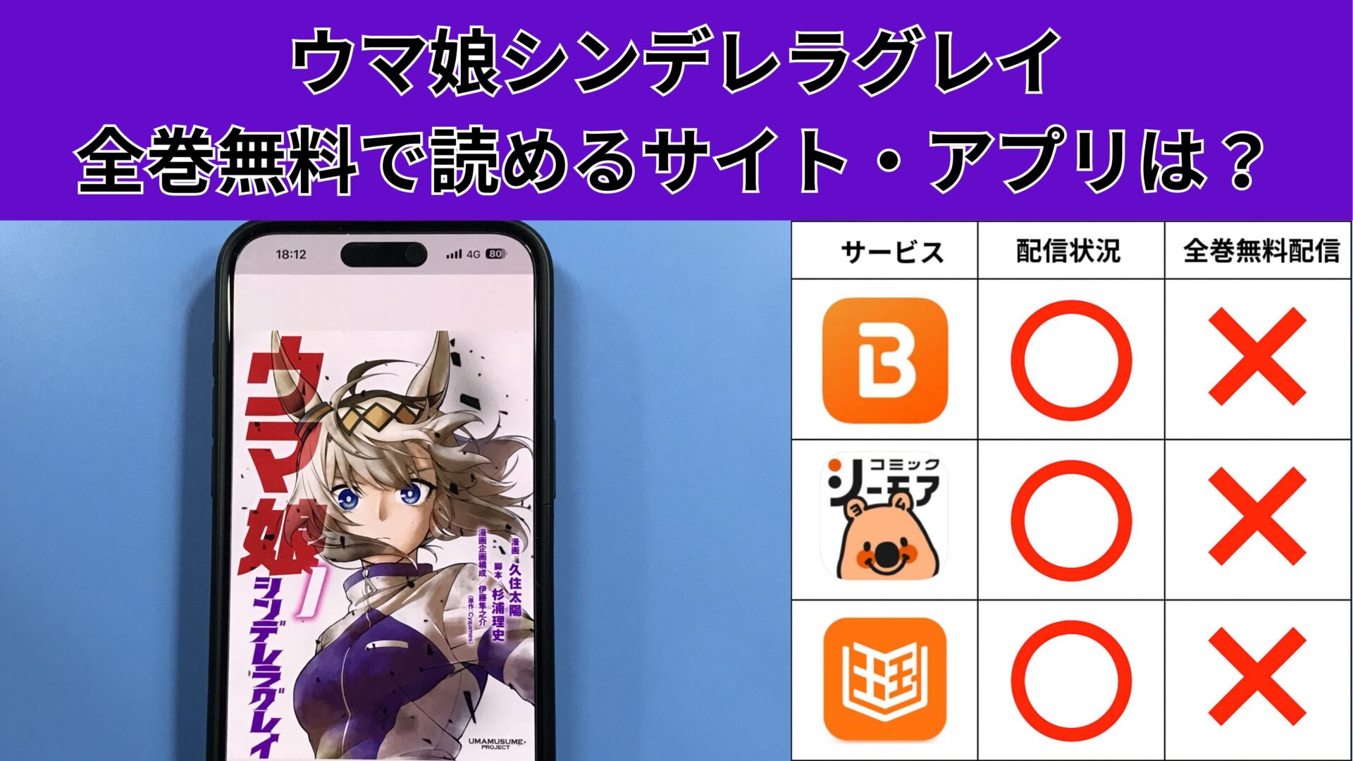 ここからは、ウマ娘 シンデレラグレイの漫画が無料で読めるアプリを紹介します。