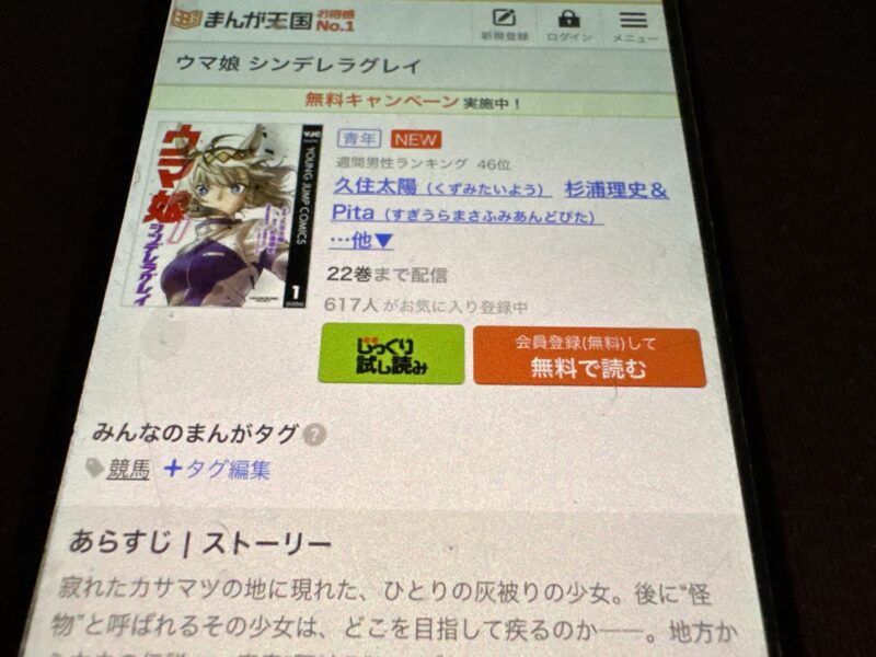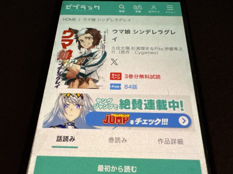 ウマ娘 シンデレラグレイはまるごと無料では読めませんが、試し読みはできます。