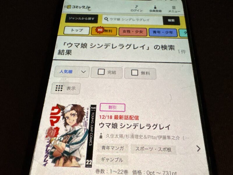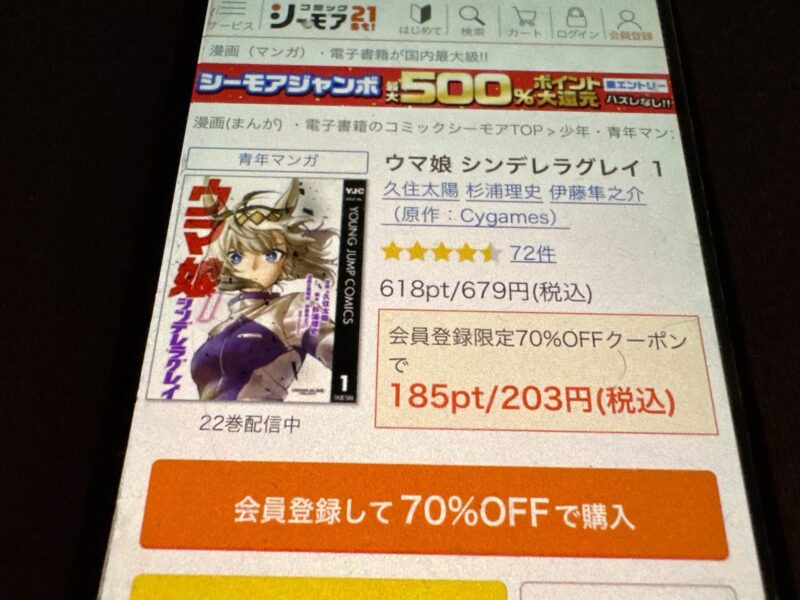 ウマ娘 シンデレラグレイの場合、全22巻までを約14,000ポイントで購入できます。