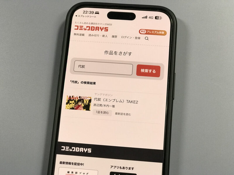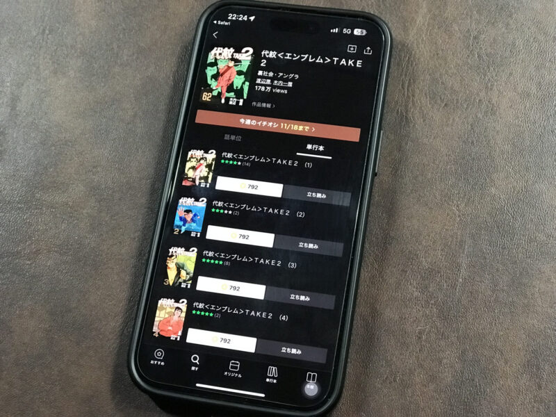 ここからは、代紋TAKE2の漫画が無料で読めるアプリを紹介します。