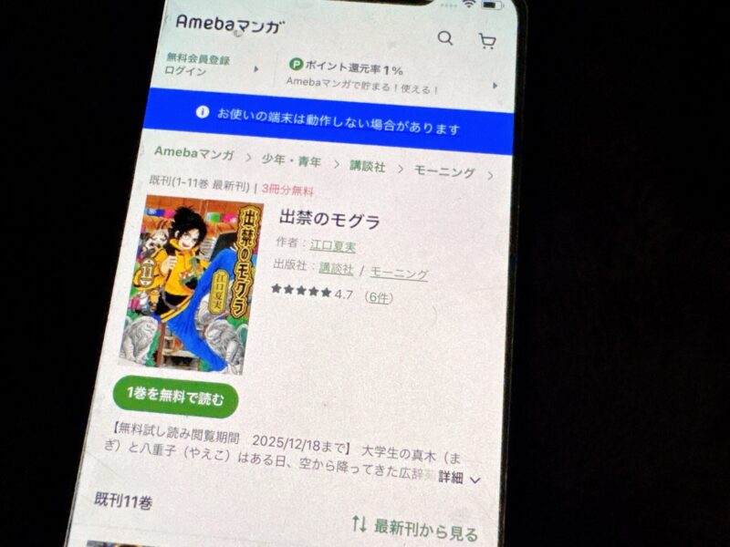 2025年11月20日発売の「モーニング」に掲載されている出禁のモグラの最新話(105話)は、以下の電子書籍サイトで無料またはお得に読むことができます。