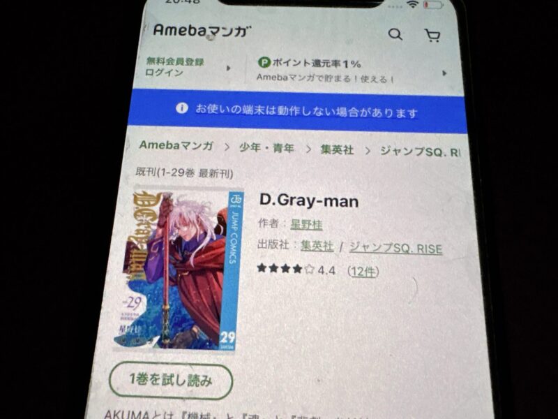 D.Gray-manはまるごと無料では読めませんが、試し読みはできます。