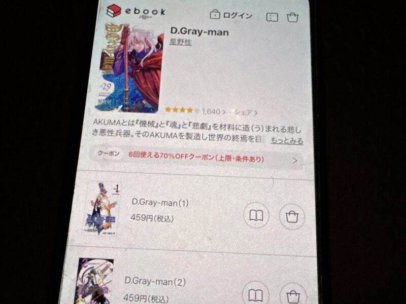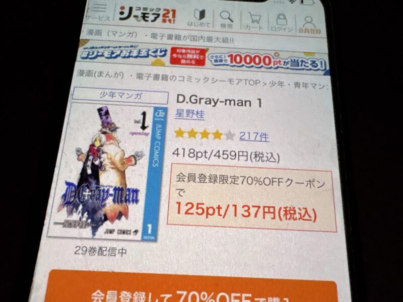 たとえばD.Gray-man2巻(税込459円)を購入する場合、クーポン利用で138円(税込)で購入できます。