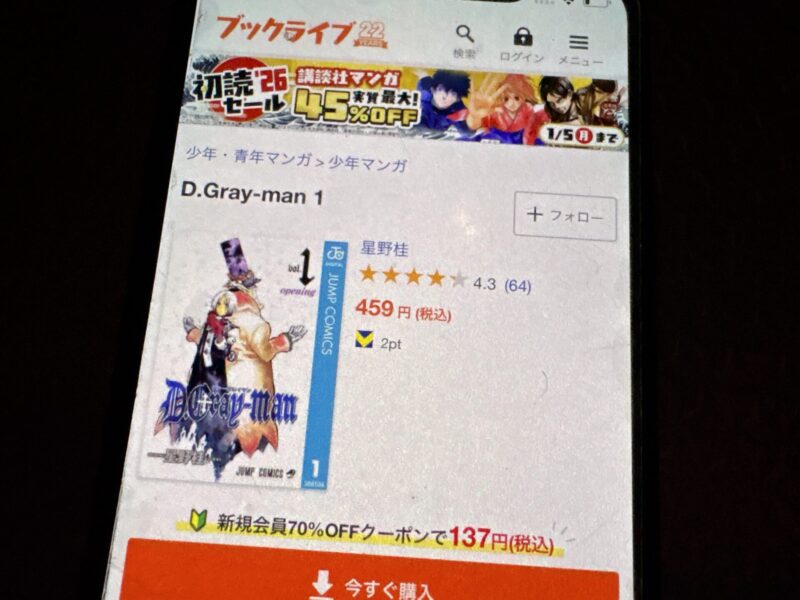キャンペーンを利用すると、D.Gray-manを割安にまとめて購入したり、1巻だけ無料で購入することが可能です。