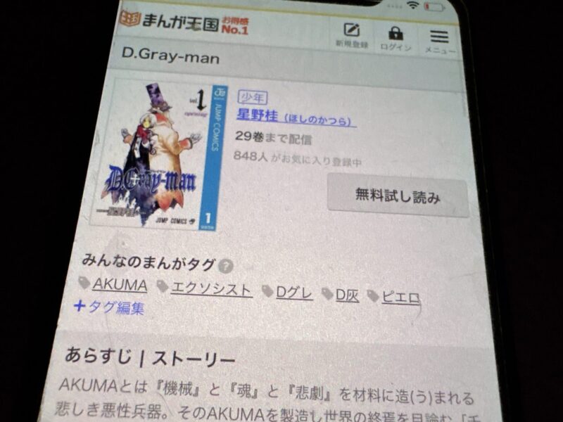 ここからは、D.Gray-manの漫画が無料で読めるアプリを紹介します。