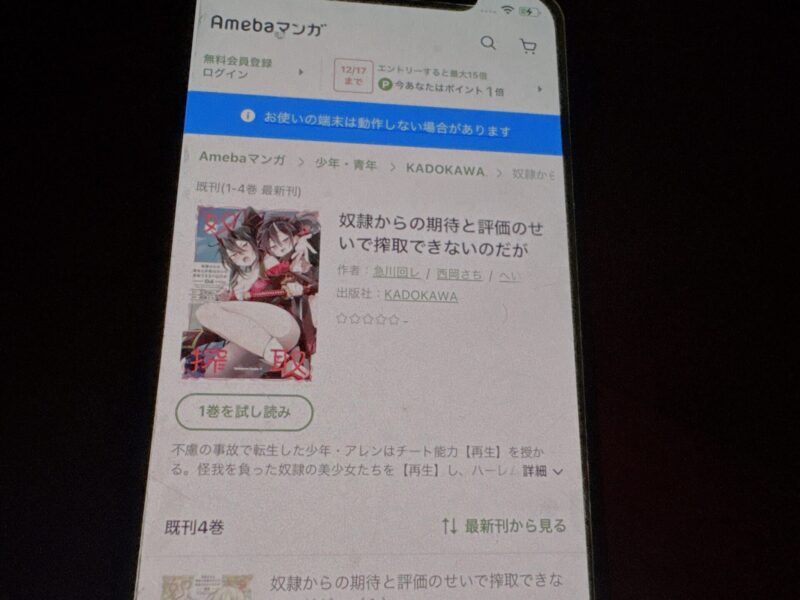 キャンペーンを利用することで一部の巻は無料で読めるため、お得に奴隷からの期待と評価のせいで搾取できないのだが漫画を全巻読むためには利用しましょう。