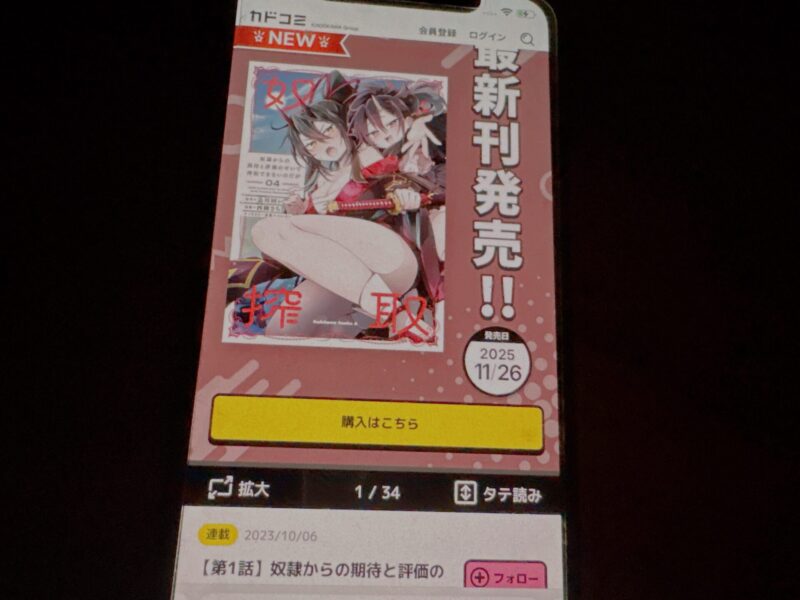 「奴隷からの期待と評価のせいで搾取できないのだが」は、出版社のKADOKAWAが運営する公式漫画アプリ「カドコミ」で読むことができます。