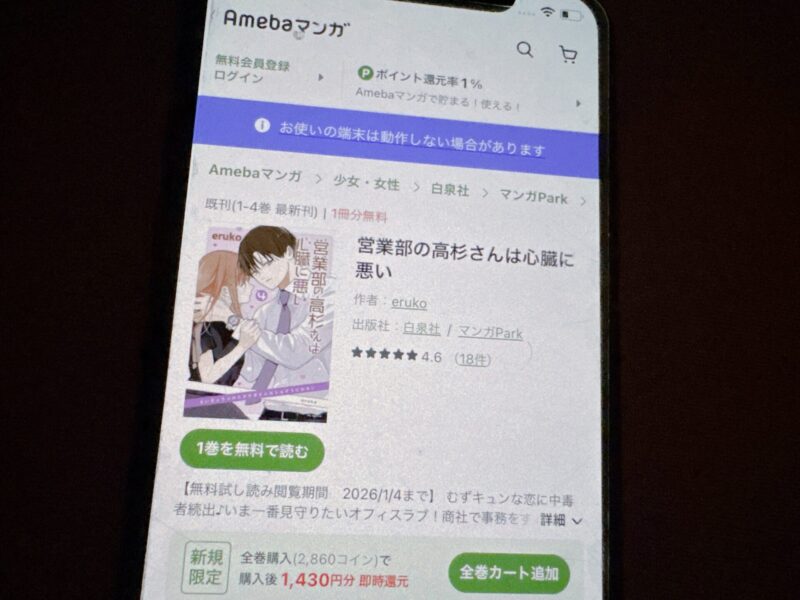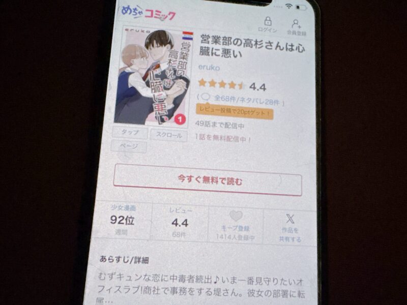 営業部の高杉さんは心臓に悪いが、無料で読める漫画アプリを紹介します。