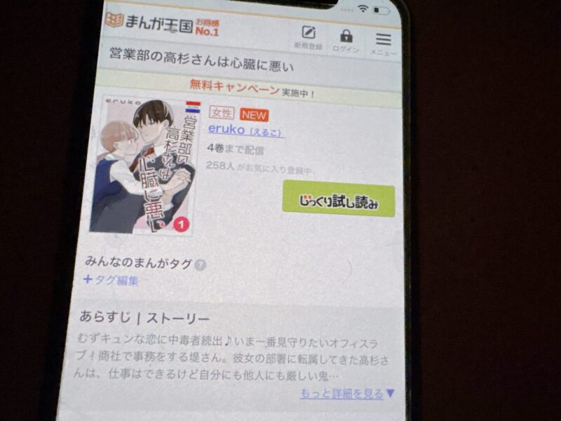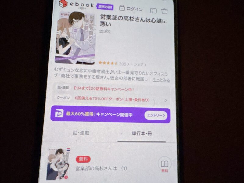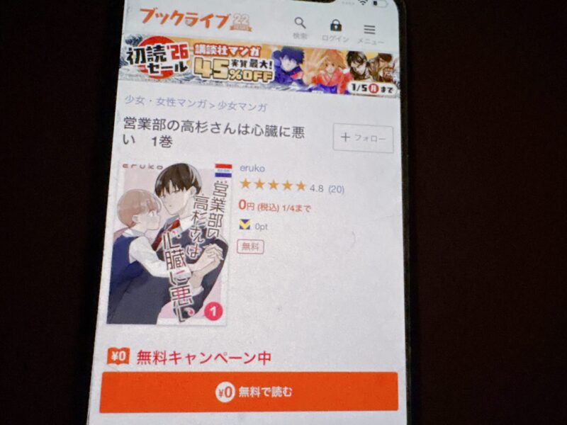 キャンペーンを利用することで一部の巻は無料で読めるため、お得に営業部の高杉さんは心臓に悪い漫画を全巻読むためには利用しましょう。