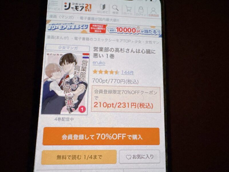 初回クーポンと組み合わせることで営業部の高杉さんは心臓に悪い全巻をよりお得に購入することもできるので、気になる人は公式サイトをチェックしてみましょう。