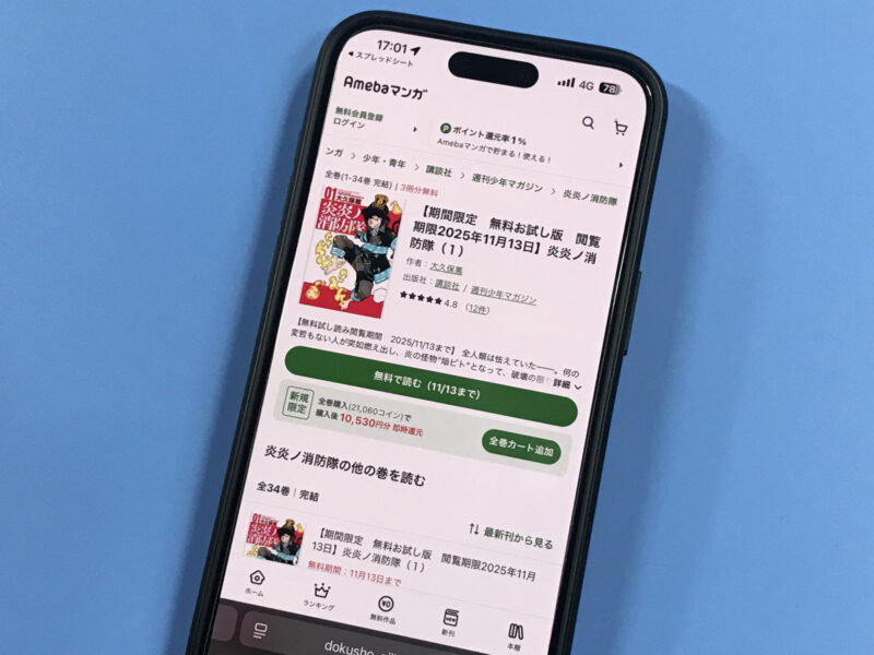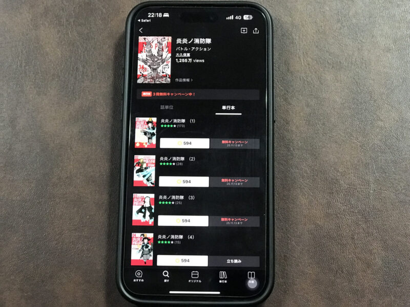 ここからは、炎炎ノ消防隊の漫画が無料で読めるアプリを紹介します。