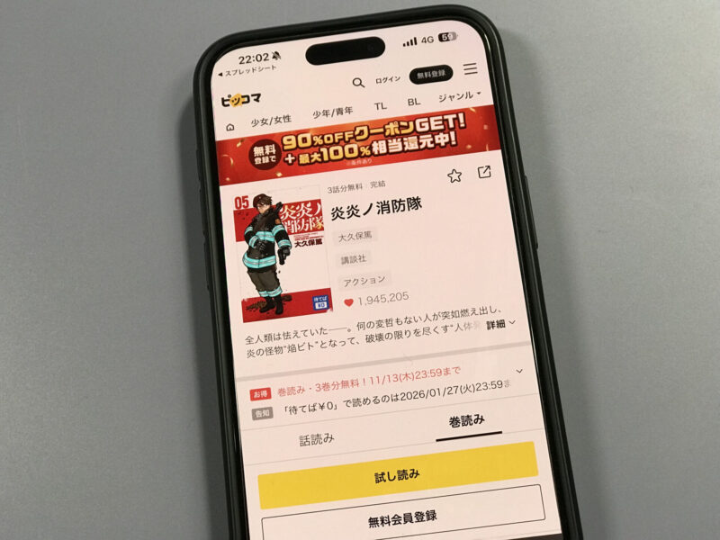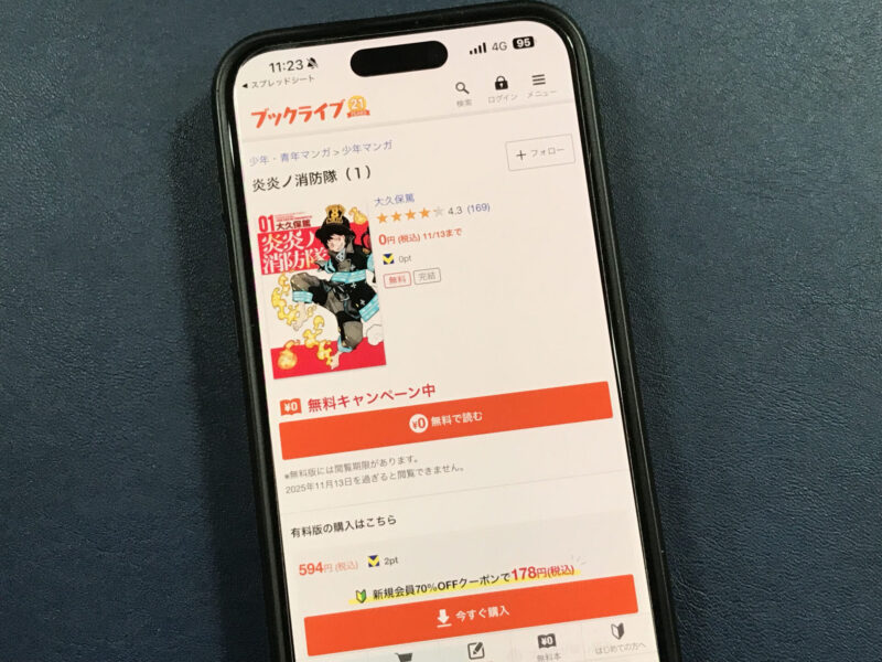キャンペーンを利用することで一部の巻は無料で読めるため、お得に炎炎ノ消防隊漫画を全巻読むためには利用しましょう