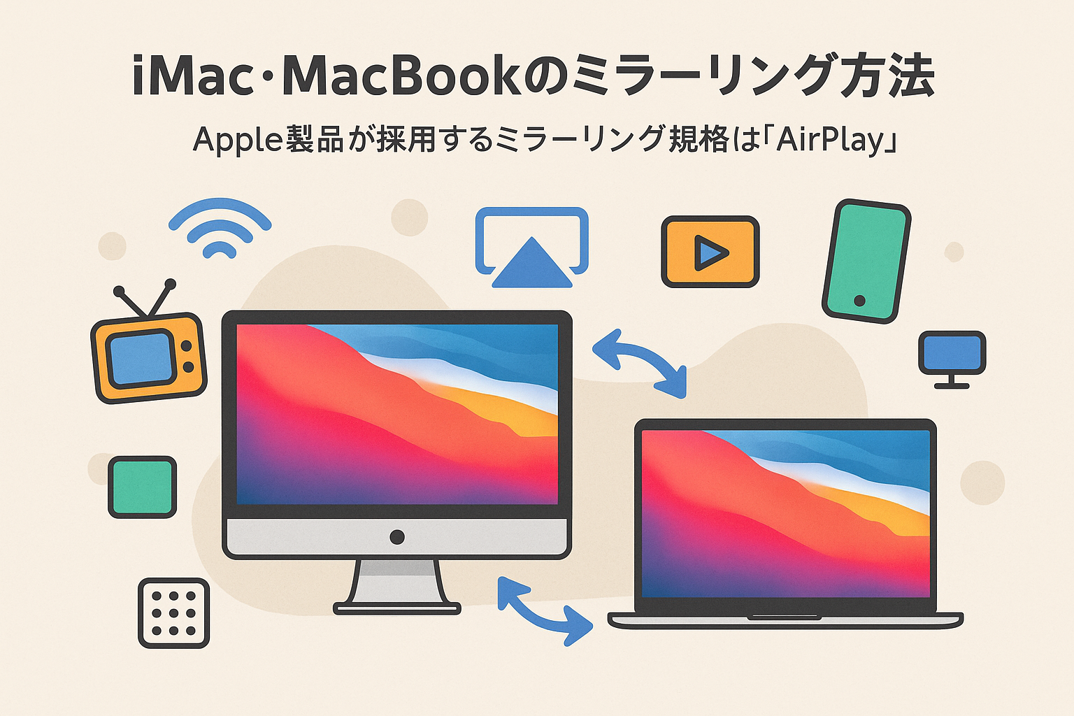 iMacやMacBook(AirPlay対応モデルのみ)にも、iPhoneと同様に、画面を他のディスプレイに映し出すミラーリング機能が搭載されています。