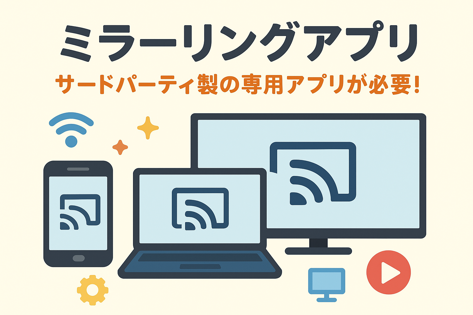 ミラーリング専用アプリのインストール方法や設定手順については、後ほど詳しく説明します。