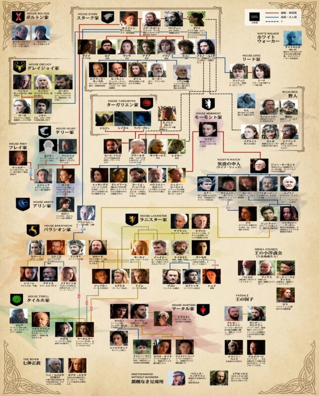 ゲームオブスローンズの相関図を主要な名家ごとに解説