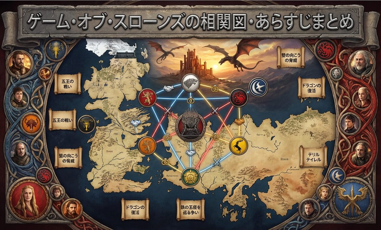 ここまで、ゲーム・オブ・スローンズの主要な名家と相関図について解説してきました。複雑に見える人間関係も、各家の「家訓」や「特徴」を知ることで、それぞれの行動原理が見えてきます。