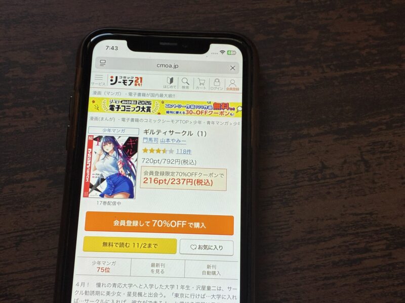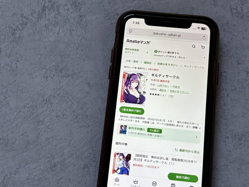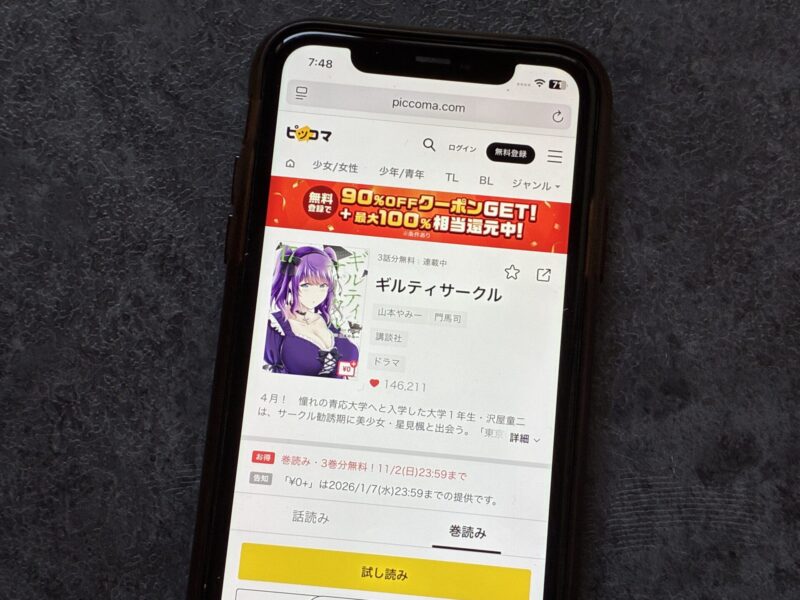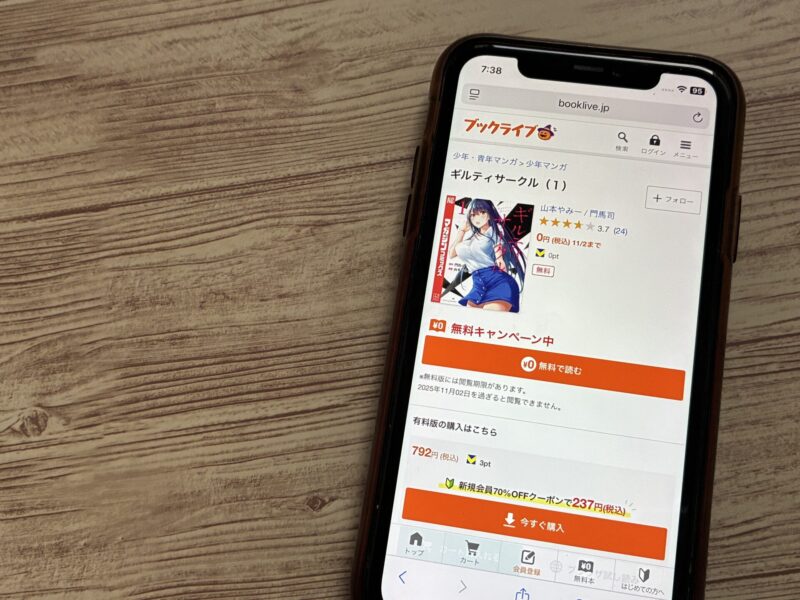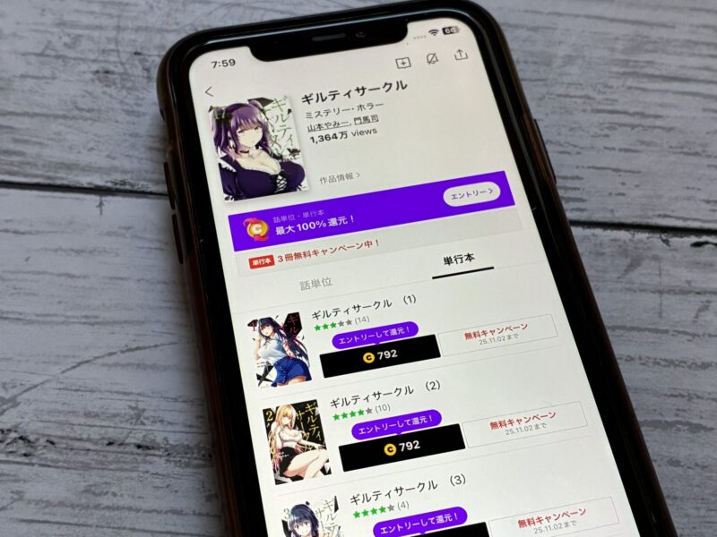 キャンペーンを利用することで一部の巻は無料で読めるため、お得にギルティサークル漫画を全巻読むためには利用しましょう。