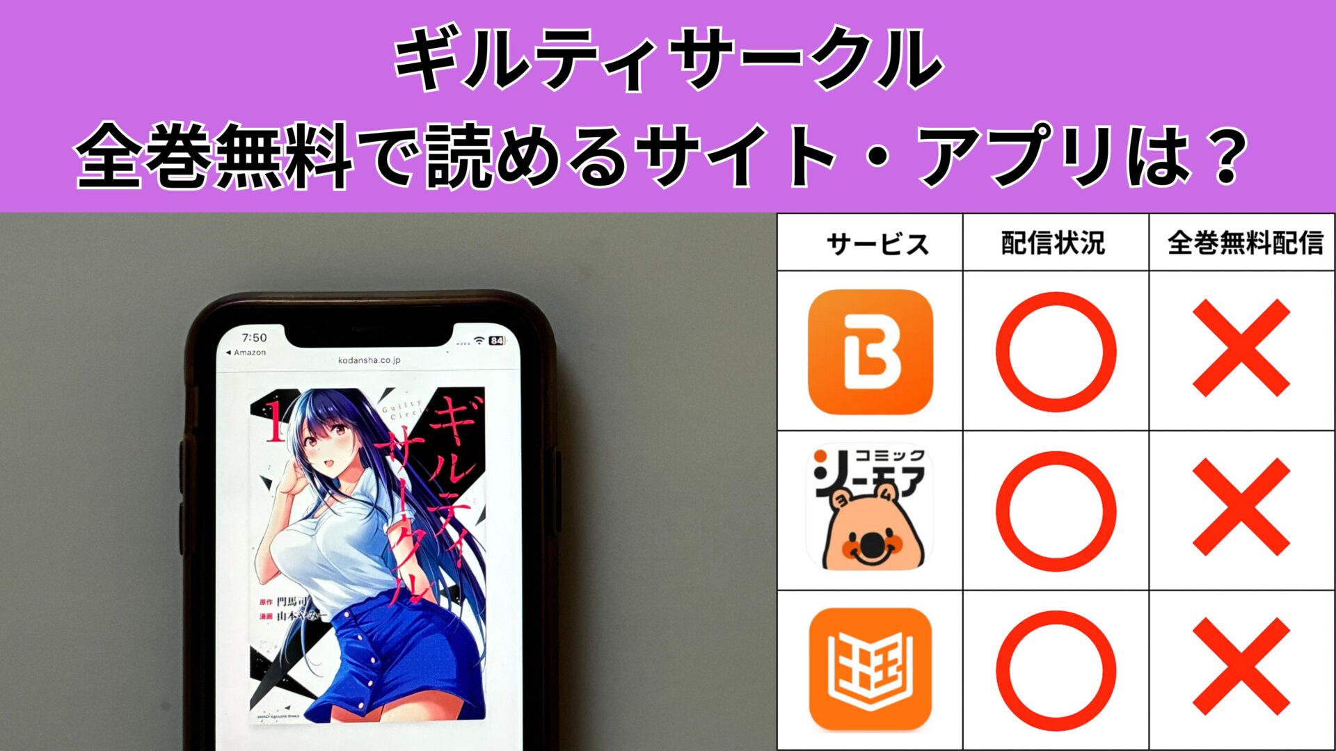 ここからは、ギルティサークルの漫画が無料で読めるアプリを紹介します。