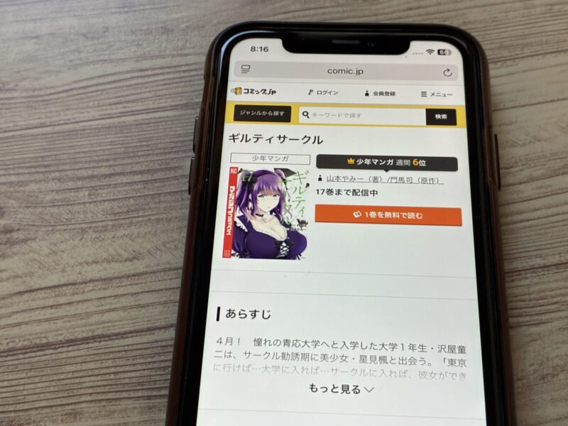 ギルティサークルはまるごと無料では読めませんが、試し読みはできます。