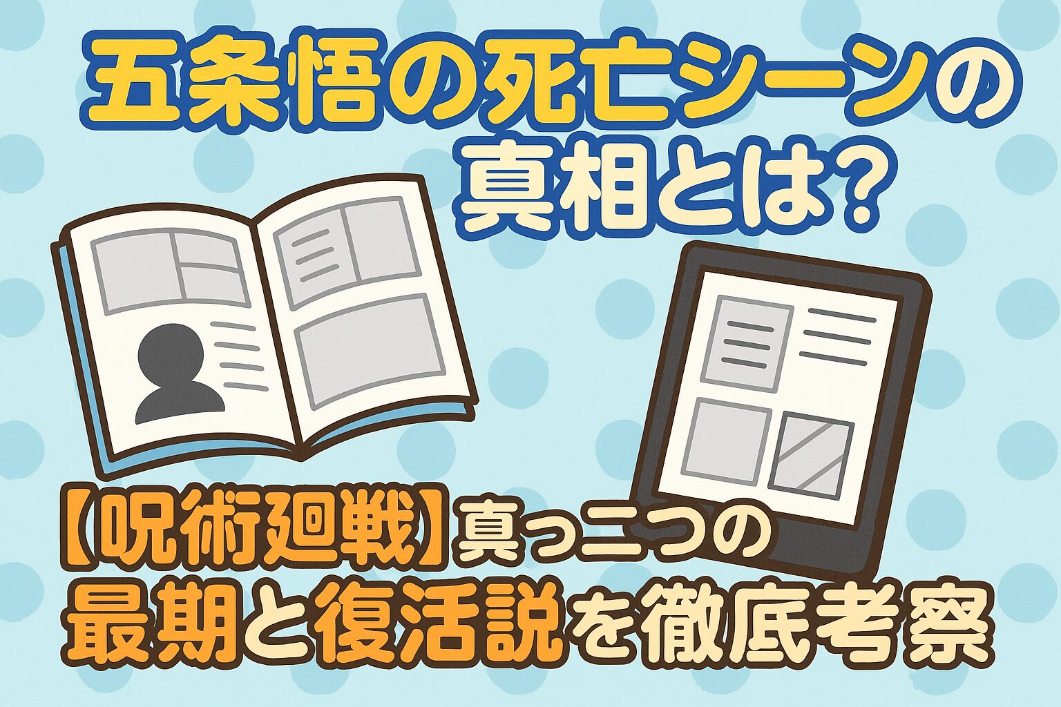 この記事では、五条悟の死亡シーンの具体的な内容、死に至った経緯、彼が宿儺に与えた影響、そしてファンの間で熱く語られる復活説まで、あらゆる情報を網羅して徹底的に考察していきます。彼の最期の瞬間に隠された意味と、未来への希望を探ります。